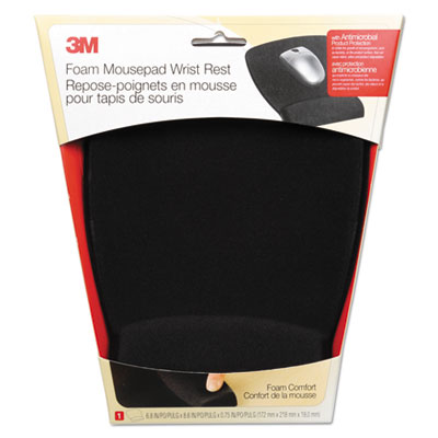Antimicrobial Foam Mouse Pad Wrist Rest, Nonskid Base, Black