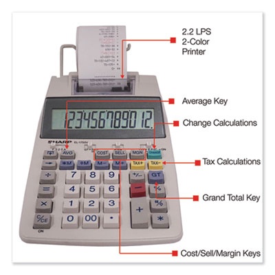 EL-1750V Two-Color Printing Calculator, Black/Red Print, 2 Lines/Sec